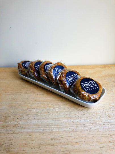 Our secret recipe rissoles are both vegan and gluten free. Nuts, Chestnuts and a mix of vegetables and spices make these patties wonderfully versatile, great on one of our salad bowls or grab a box of four to put in the freezer at home. They are lovely warm with mashed potatoes, veg and gravy with a splodge of redcurrant jelly! Makes a wonderful vegan Sunday lunch.